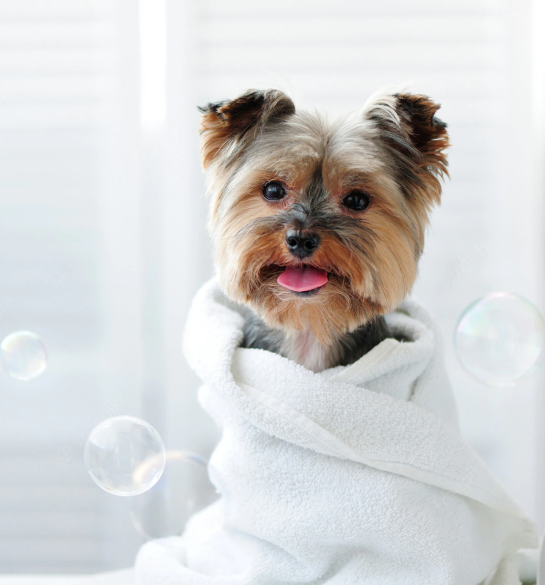 includes soothing shampoo, blow dry, brush-out, ear cleaning, nail trimming, and a complimentary bandana!